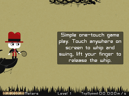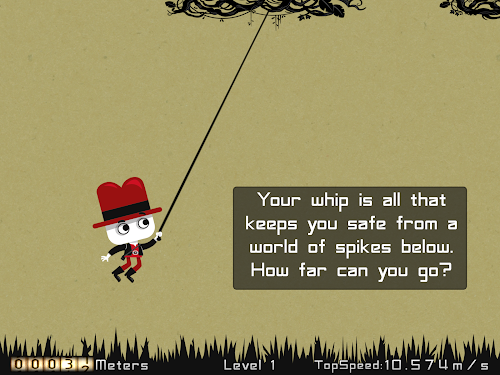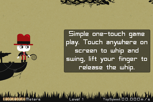 Touch anywhere on screen to whip & swing, lift your finger to release the whip.
