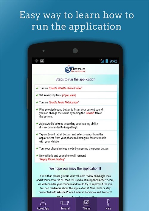 Whistle phone finder is an Android phone locator app that helps you to search your phone after losing it, forgetting it somewhere or being hidden. Just whistle up and your phone will tell you where it is. Isn't it fun? Nine Hertz has created an amazing phone finder app with unique algorithm that identifies your whistle sound and responds to it with a predefined sound which ultimately leads you to the device location.