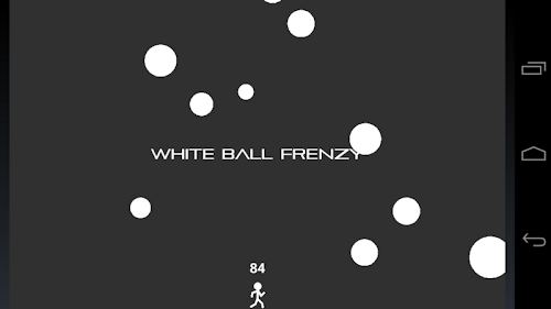 andengine, scoreloop, ball, white ball, balls, white, running, frenzy, gles2, opengl es 2.0, avoiding balls, avoid balls, survive, bounce, bouncing, bouncing balls, accelerometer, touch screen, global leaderboard