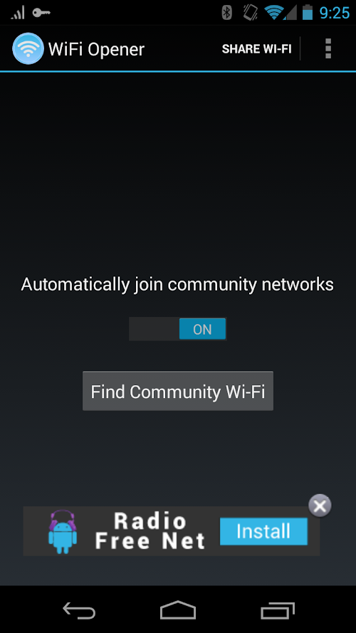 WiFi Opener allows you to automatically connect to password protected networks shared with the community. WiFi Opener is especially useful in public spaces like parks, coffee shops and at large gatherings like conferences where the Wi-Fi network is meant to be open but is password protected.