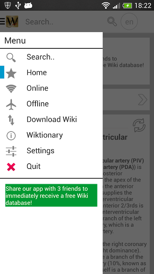 * Take all the Wikipedia knowledge with you even without an internet connection, with Android's ONLY app to offer over-the-air downloadable offline databases in over 30 languages!