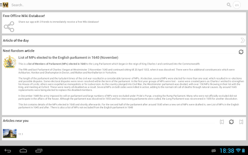 * Make reading Wikipedia fun with our random article function right from the first page of the app!