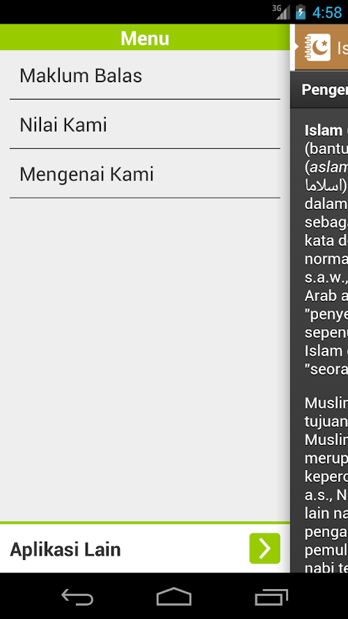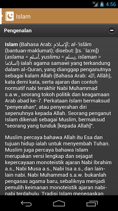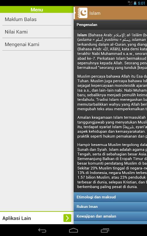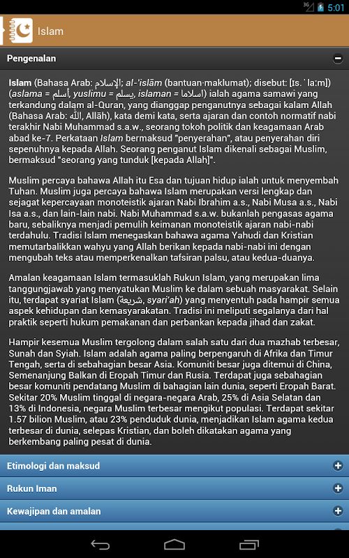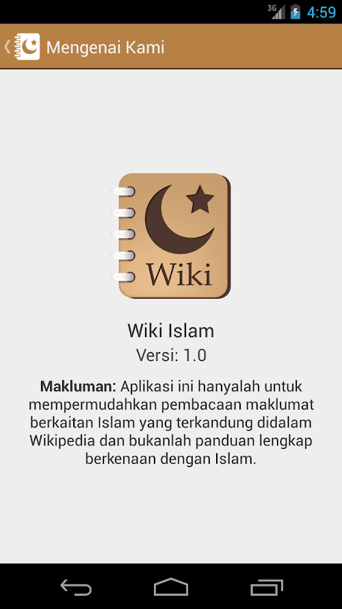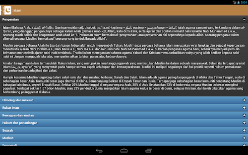 Makluman: Aplikasi ini hanyalah untuk mempermudahkan pembacaan maklumat berkaitan Islam yang terkandung didalam Wikipedia dan bukanlah panduan lengkap berkenaan dengan Islam.
