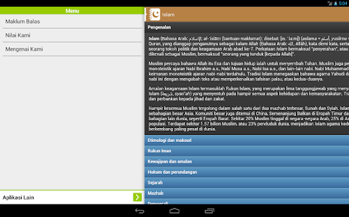 Dapatkan maklumat Islam bersumberkan Wikipedia dibuat khas utk kemudahan anda. Aplikasi ini berlatarbelakangkan maklumat berkaitan Islam dari wikipedia dan dibentangkan dengan penampilan yang berbeza khas untuk kemudahan pengguna Android.