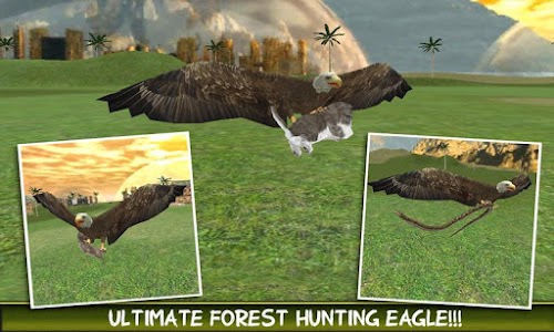 Fly across the massive island fight against dangerous animals in the forest location. Wild Eagle Hunter Simulator 3D is quest for the beautiful golden eagle for hunting, fighting and surviving in the wilderness. Flown from its nest over the mountain this giant bald eagle flying over beautiful island; live life of hungry eagle and attack forest animals to fill its belly. Explore the majestic island full of dangerous animals like fox, deer, rabbit, cat, zebra or goat. Maintain your health hunt little animals and reptiles like snake. Join the epic battle for the ultimate survival of the fittest. Avoid flying near hunter or he can kill you with rifle.