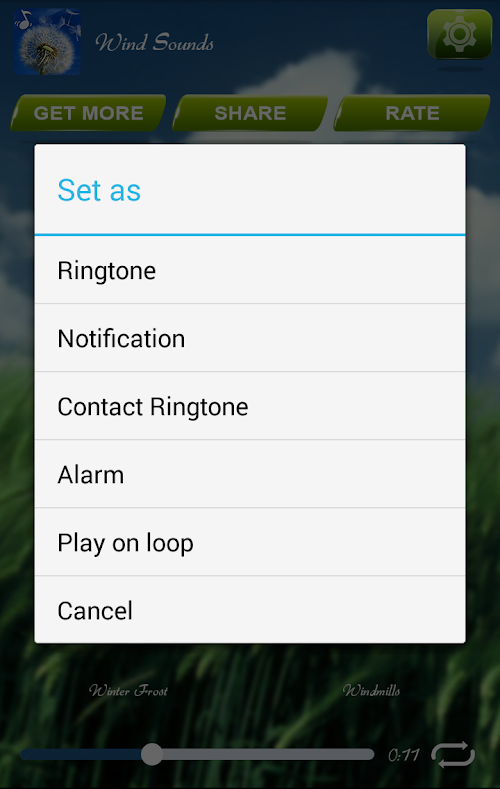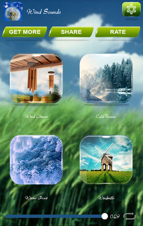 Wind Sounds brings a delightful collection of gentle and calming but also powerful and mysterious voices with which the nature speaks to us. Wind Sounds are meant to provide calm atmosphere that will help you fall asleap and reduce stress. Download this lovely app, share it with your dearest friends and enjoy top relaxing wind sounds right now, completely free of charge! Wind Sounds is a lovely new app for mobile devices, bringing you the most wonderful natural tones which will make it easier for you to simmer down after a hard and busy day. Enjoy top ringtones, soothing message tones and nice alarm sounds every time someone contacts you.
