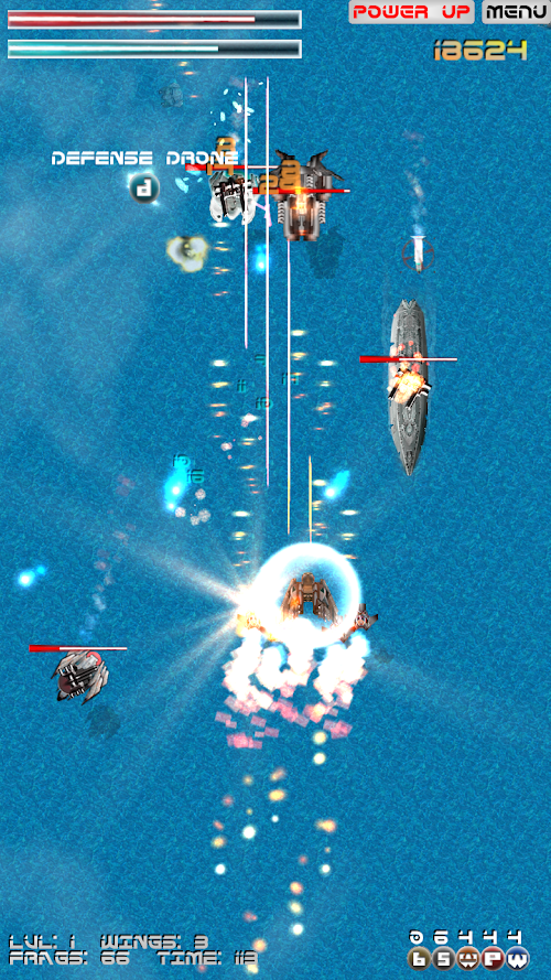 Select your Wing Zero 2 Sky Battle Fighter and Power Up to survive over 20 Worlds full of different Enemy types in a variety of Air Attack - Land and Sea Battles! Enjoy Skills, Permanent Upgrades and Epic Boss Fights in this ultimate addictive, fast paced Sky War Game! Change between 3 upgradeable Wing Fighters and 2 main Firemodes: RED or BLUE. You can absorb Bullets of the same color to use your " OVERLOAD " Screen Bomb Skill or change Color to maximize Damage and Risk. Join this epic Bullet Hell Battle now! It's 100% FREE with no in app purchases!