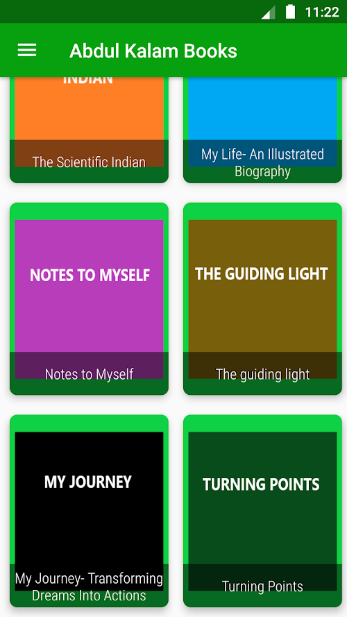 In this App you will get complete books written by Dr. APJ Abdul Kalam like Wings of Fire, Ignited Minds, India 2020, Turning Points and many more.
