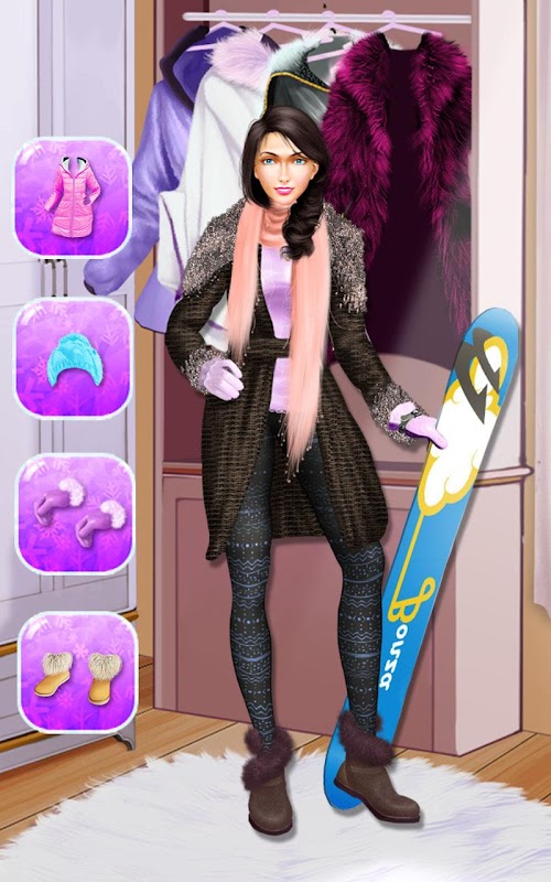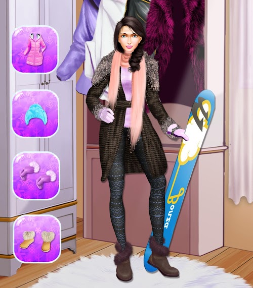 Your amazing ski resort holiday vacation is coming up. It's time to put on a pretty dress, fix your makeup and turn yourself into a perfect Christmas beauty! Run your own spa in this creative dress up and makeover app for girls. The holiday season has arrived, Christmas is just around the corner, and you need to look your best. Put on just the right makeup and pick out the perfect dress so you'll look like a true holiday ski beauty!