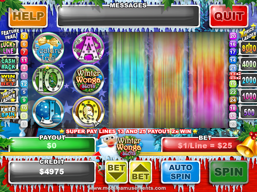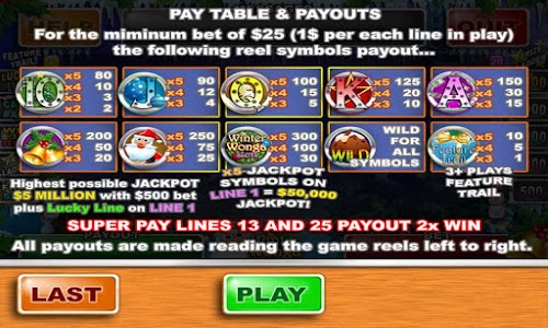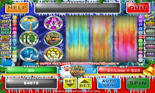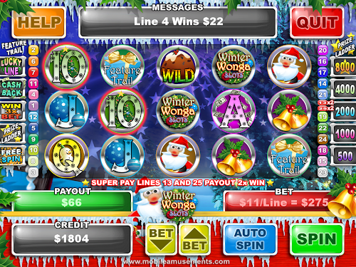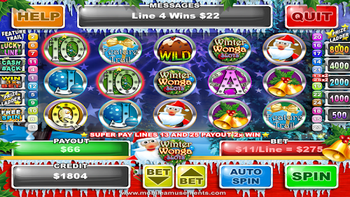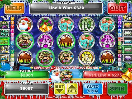 Winter Wonga Slots the 5x3 reel Christmas themed casino slot machine where you can win a virtual cash fortune!
