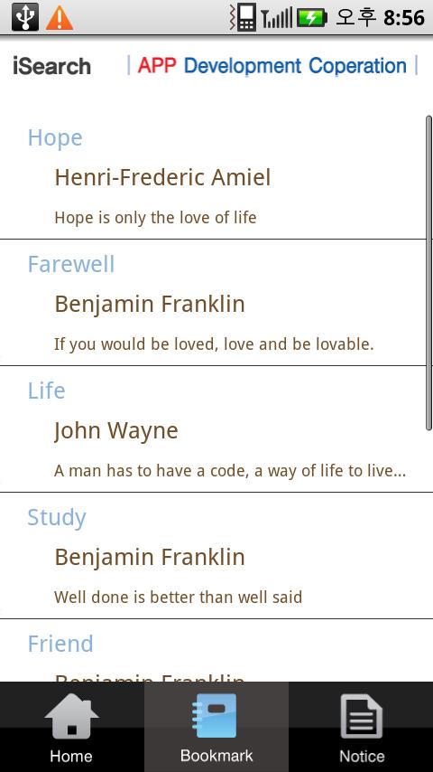 1.When you see a wise saying, if you push a screen to the left or right, page will be move.