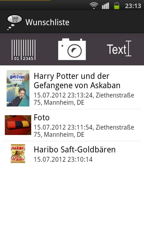 You can scan the barcode of any product, take a photo or just write a few words as a note.