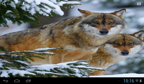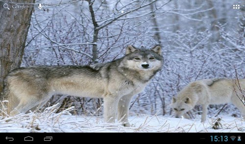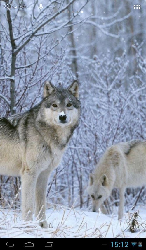 This is a live wallpaper beautiful wolves in winter weather.