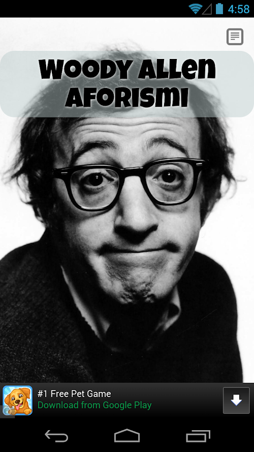 If you are looking to download other versions of Woody Allen Aforismi Android App, We have 1 version in our database. Please select one of them below to download.