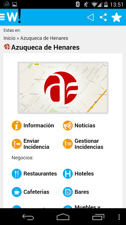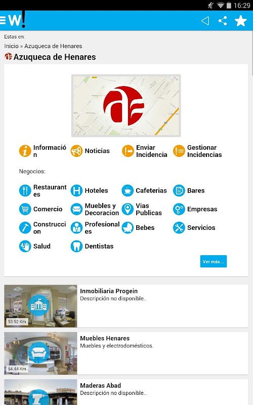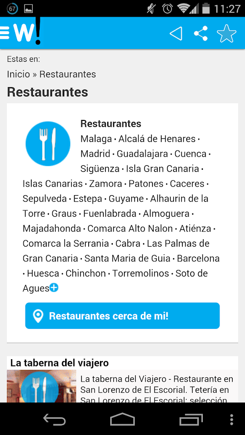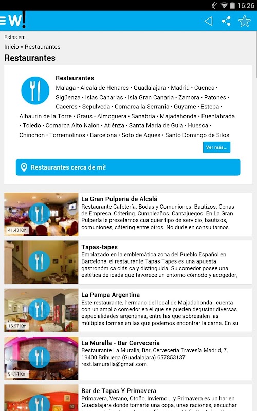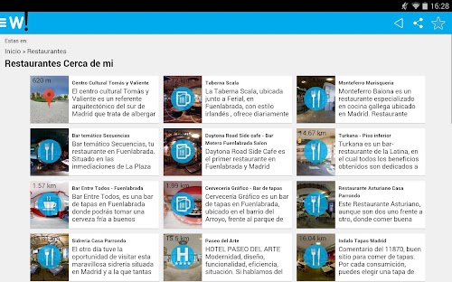 Furthermore You can look for places by means of geolocation being able to find restaurants, hotels in the surroundings