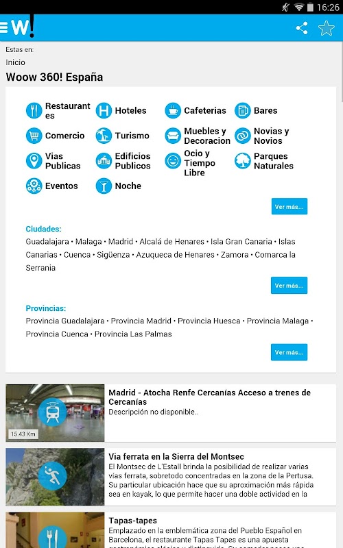 Woow 360! includes functions to save your favourite places and businesses, plan ahead your holidays saving those places you want to visit.