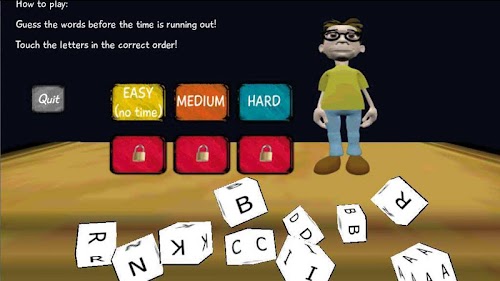 You will also find an easy beginner mode without a time limit, perfect for kids to learn words and letters with a lot of fun.