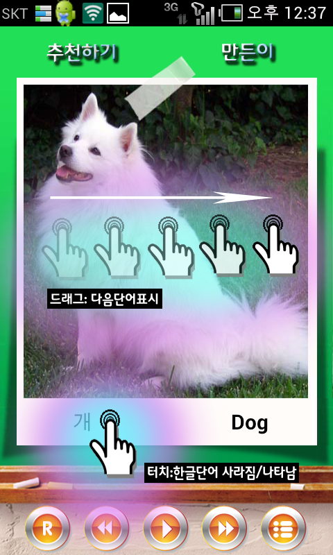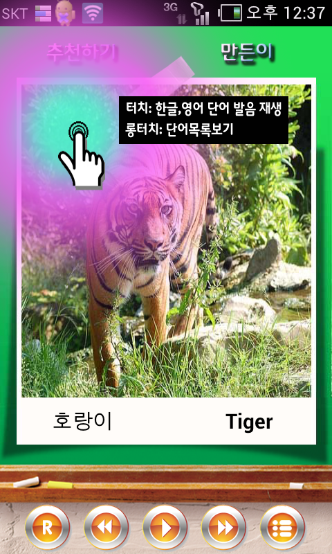 If you click the photo, pronunciation Korean, English will be played.