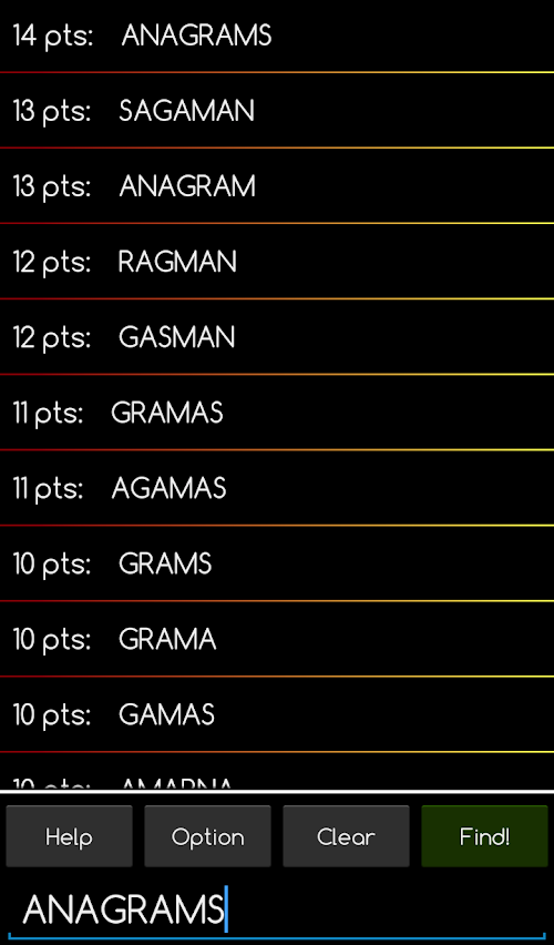 - Can be used for other games (like Scrabble) or just to have fun making anagrams out of words you enter.