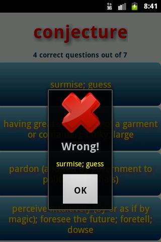 If you love vocabulary builder, word search, hangman, or other word games, you'll love this amazingly fun game. While having fun, you will master 4000+ challenging words guessing the definition or choosing the right definition out of four.