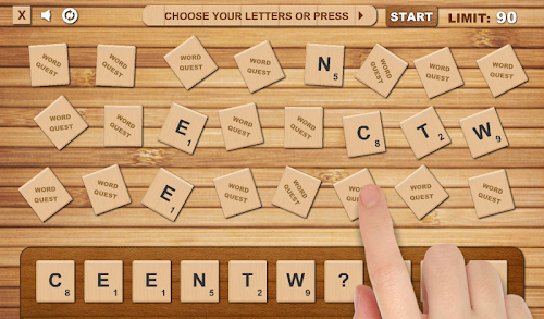 Choose your letters and rely on luck! With letters at hand create as many as you can within 90 seconds! Each word created will increase a limit! The longer the words you give the higher your score will be! Go for highscores!