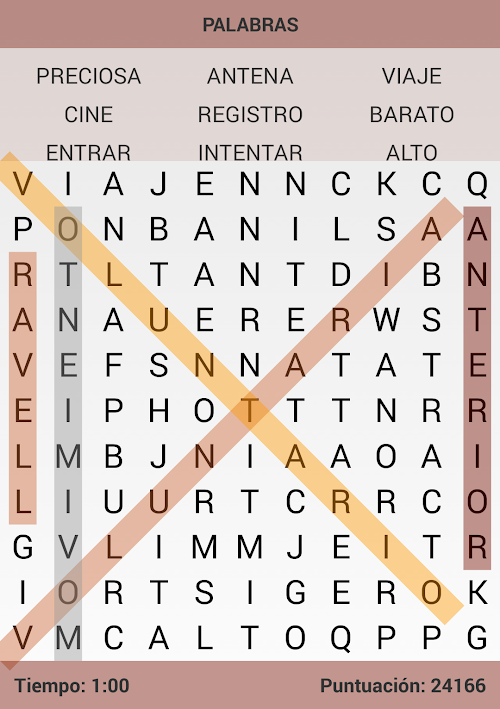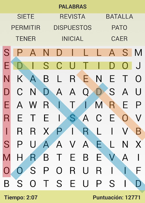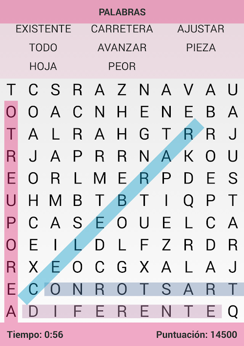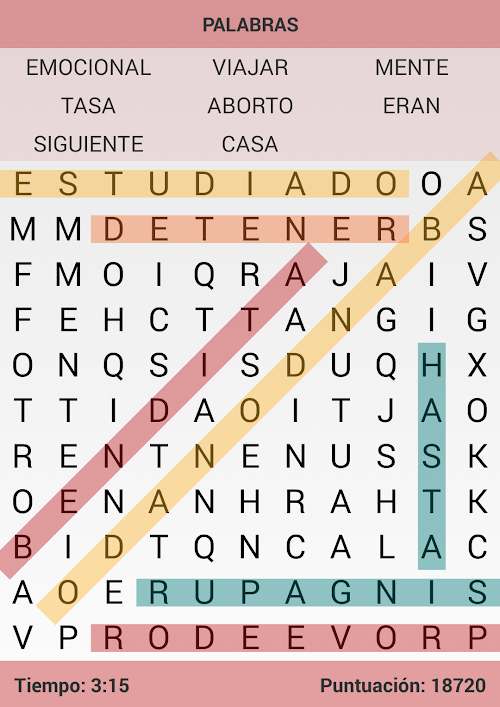 Do you like Word Search? We have good news for you! Word Search app is now in Spanish. All the words and the app itself is in Spanish language. It has an online leaderboard. You can compete with your friends.