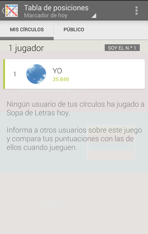 Score is calculated based on the length of the found words and the elapsed time. When you find all the words, the score is sent to the online scoreboard on Google+. You can see the best players daily, weekly or for all times.