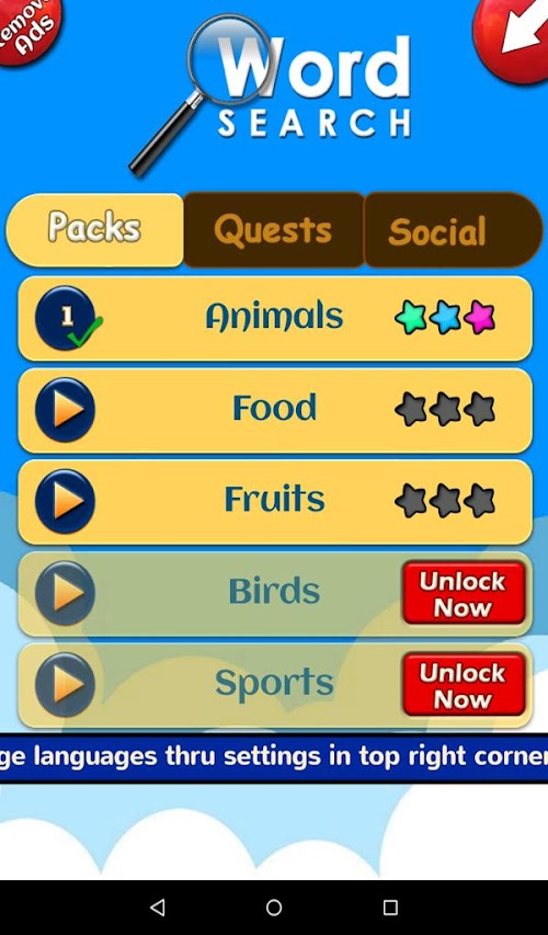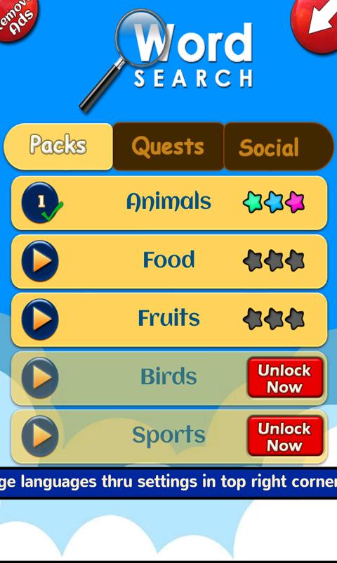 Each Pack is based on a topic, it has several hundreds of popular words which form unlimited levels to play.
