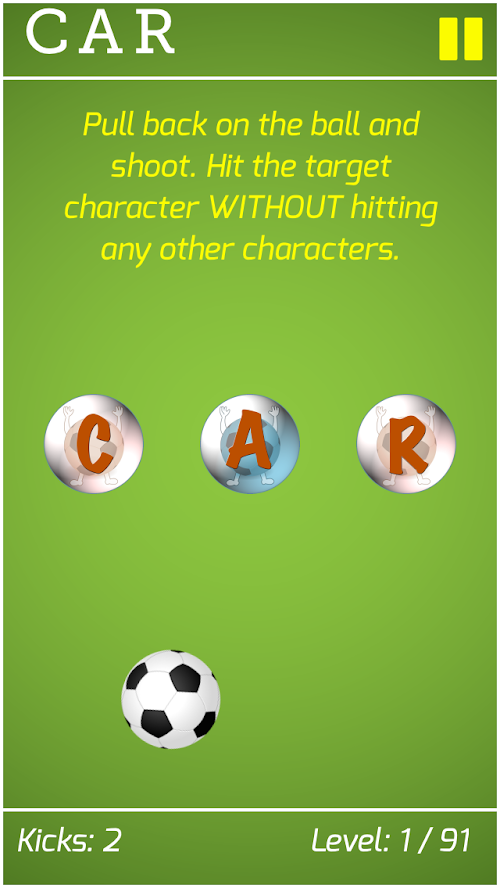 In Word Soccer, use your kicking skills to make words. Kick towards the letters tactfully as you get on the field full of letters. Enjoy 90+ levels.