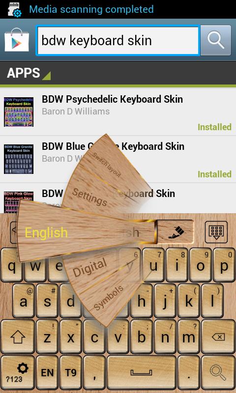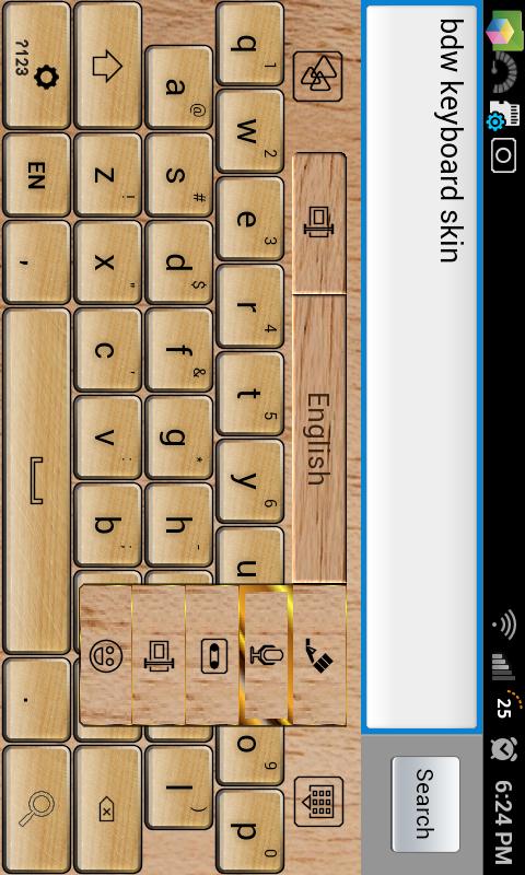 Scrabble fans might be interested in knowing that a friend of mine noticed that the keyboard key images which were made from photos of wood tiles sort of resemble the letter tiles found in the Scrabble board game. Because Go Keyboard allows you to set the key height, when my friend set them to nearly square, the word tile keys looked very similar to Scrabble tile game pieces, even though they actually are not Scrabble tile pieces.