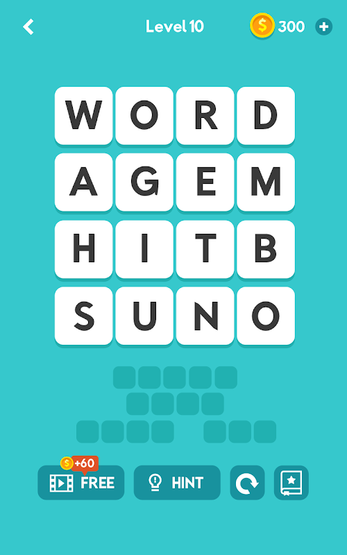 Words can be vertical, horizontal and diagonal; find the word to clear the stage!