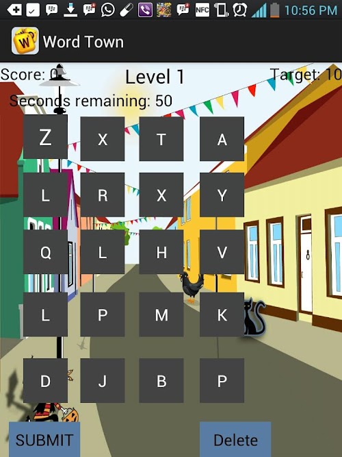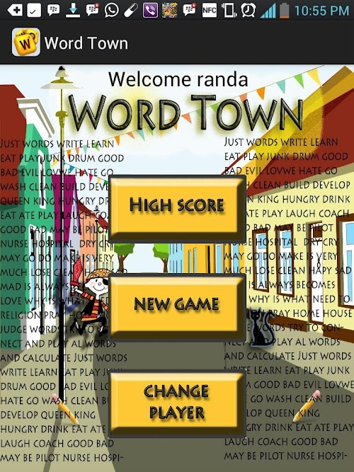 Word Town is a unique word game and fantastic, try to make words as much as you can before you run out of time each level, and each level has certain points you must collect to finish it, increase your score by finding the biggest words and try to beat your high score.
