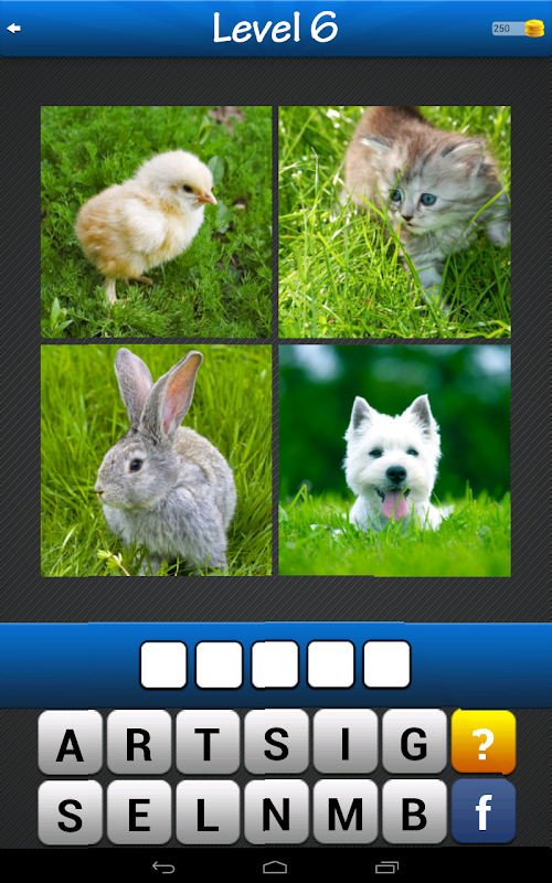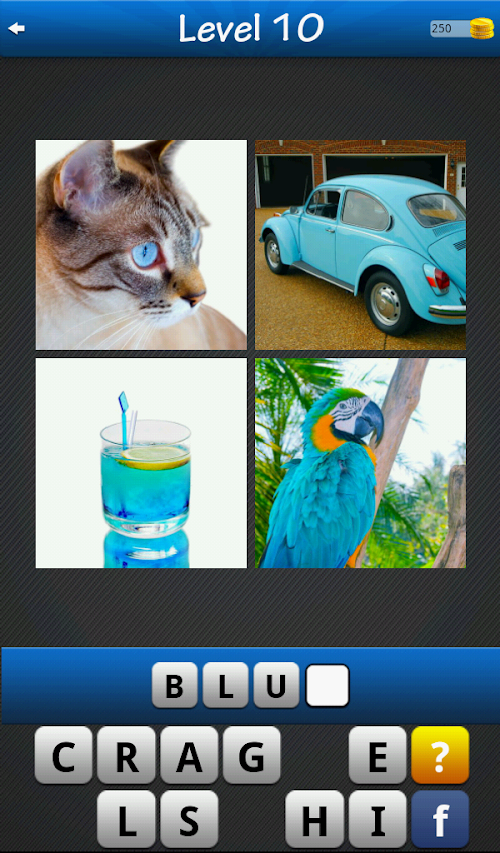 Dive in a world of fun with this free addictive game! You have 4 pictures that have 1 thing in common and your task is to guess the word. Simple as that!