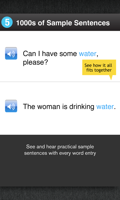 - Sample Sentences: See and hear practical sample sentences with every word entry