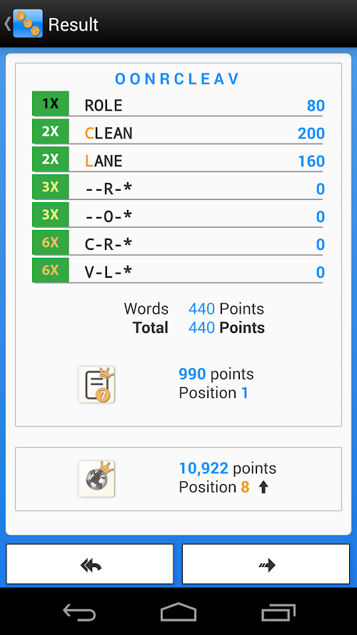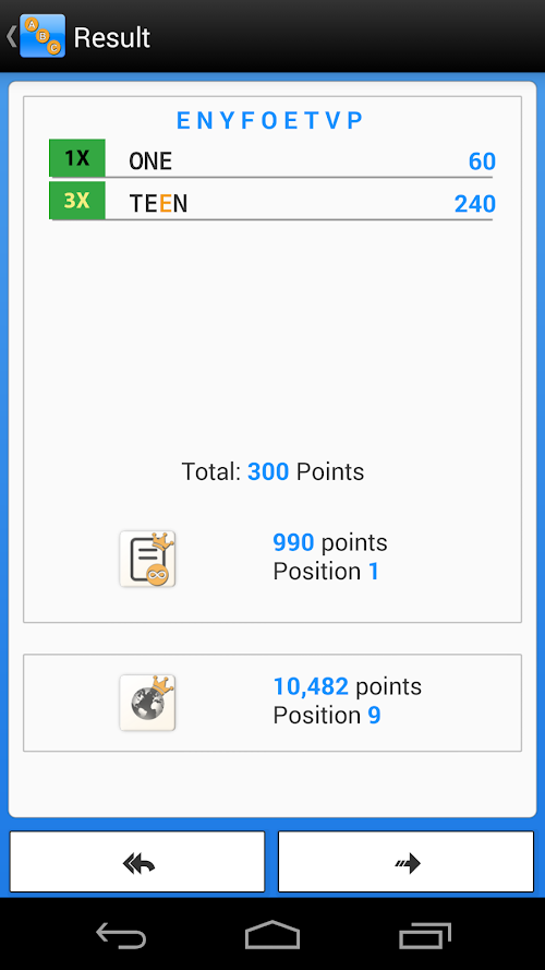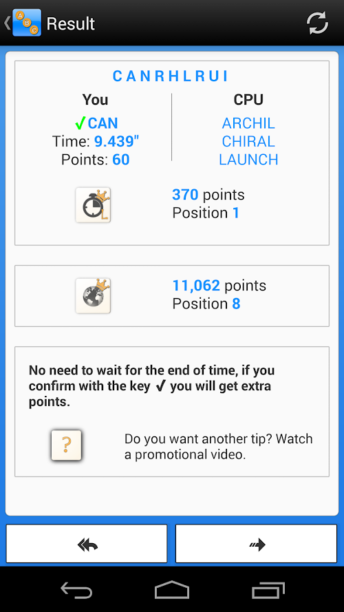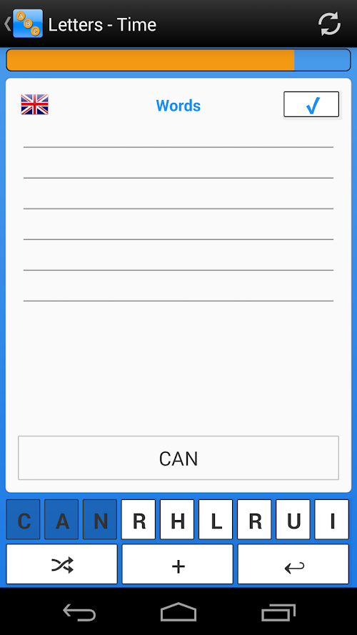 - Letters - Lightning: you have 150 seconds to form words. Every time you get a word letters are changed. If the word has more than 6 letters you get overtime.