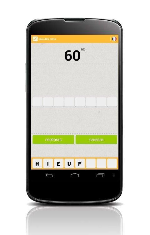 The goal of this anagram game: find words that use the maximum number of letters before the end of the countdown.
