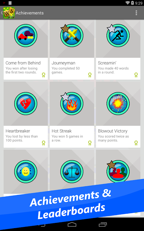 Challenge yourself with achievements or try for a spot on the leaderboards. WordSlide Battle is the action-packed word game you've been looking for!