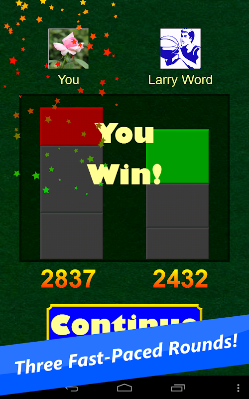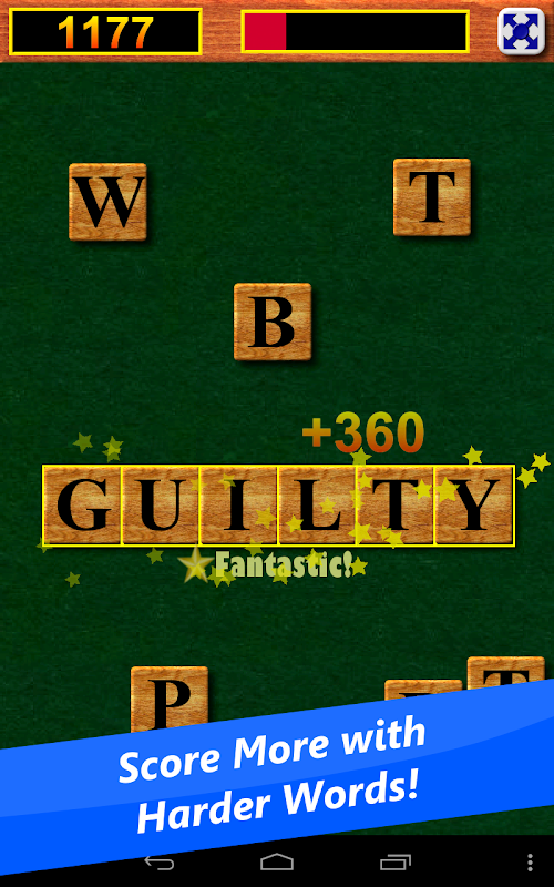 Unlike other word games, in WordSlide Battle you can move the tiles anywhere on the screen -- even on top of other tiles. This makes the action fast and fun and gives you a freedom the other games can't match. Whenever you form a word, the tiles snap together with a satisfying click.