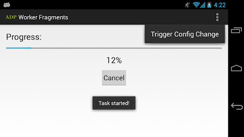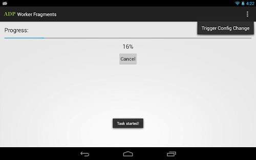 This sample application was written as part of the following blog post: http://www.androiddesignpatterns.com/2013/04/retaining-objects-across-config-changes.html