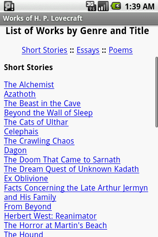 If you are looking to download other versions of Works of H. P. Lovecraft Android App, We have 1 version in our database. Please select one of them below to download.