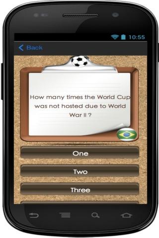 Get the best WORLD CUP 2014 BRAZIL QUIZ here. We cover nearly 100 questions and answers about various football topic such as players, coach, World Cup facts, stadium for World Cup Brazil, previous champion and many more. We sure you will love this simple application.