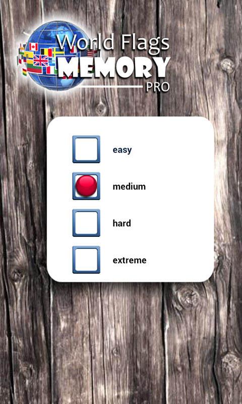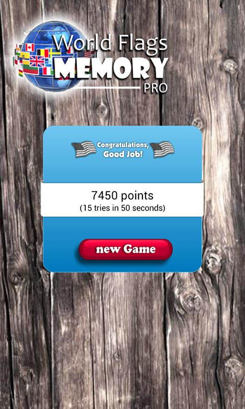 World Flags Memory Game PRO is a fun and addicting card matching brain-booster. The cards are showing the national flags of more than 160 countries. This educational and entertaining memory game is perfect for adults and children of all ages. It can improve your cognitive skills and is like a virtual world trip.