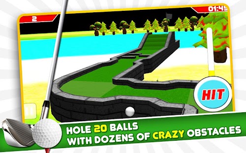 Complete all 20 holes, and see if you score the best in this fun miniature mini golf game. In full 3D and with beautiful environment, enjoy putting the golf ball in this obstacle based mini golf course.