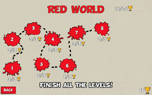 World of Paint is made out of worlds. Travel through them by finishing the levels and make it to the end! If you have the problem solving skill and are good at puzzles and ball control you can give the hard world a try. In this world you face harder levels and your painting masterpiece and puzzle skill will be challenged! Unlock more levels and worlds by collecting trophies.