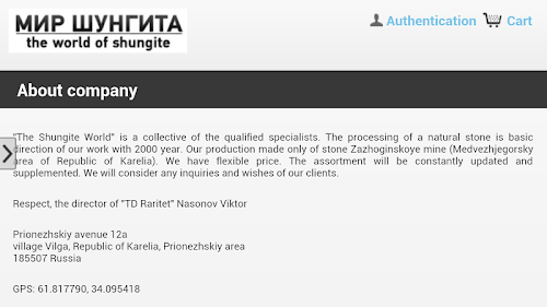 "The World of Shungite" is one of the best companies providing shungite souvenirs worldwide. The company offers the lowest prices on the market as well as it provides wide range of products. We are also proud to say that our products are good quality. It is not just words but it is proven by our 15 years work experience. Moreover, every souvenir is made from a natural shungite, which you can only find in Zazhoginskoye mine (Medvezhyegorsk area; Republic of Karelia).The assortment is constantly updated and supplemented. We are also glad to consider any inquiries and wishes from our customers.