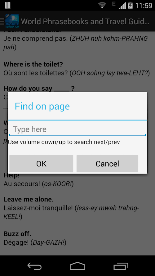 FREE 25 Languages Phrasebooks: German, French, Spanish, Catalan, Portuguese, Italian, Greek, Dutch, Swedish, Norwegian, Finnish, Czech, Polish, Hungarian, Russian, Croatian, Turkish, Hebrew, Arabic, Japanese, Chinese, Indonesian, Malay, and Thai. Navigate from Table of Contents or search for words or phrases.
