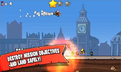 The Empire is starting attack on the state of World. Get ready to fight back with your bomber. Destroy mission objectives and buildings to help your bomber land safely. The game uses the Box2D physics engine.