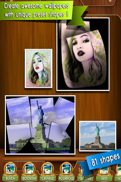 Paper fold the photo: One touch gesture to wrap your photos. More than 80 different shapes to choose from