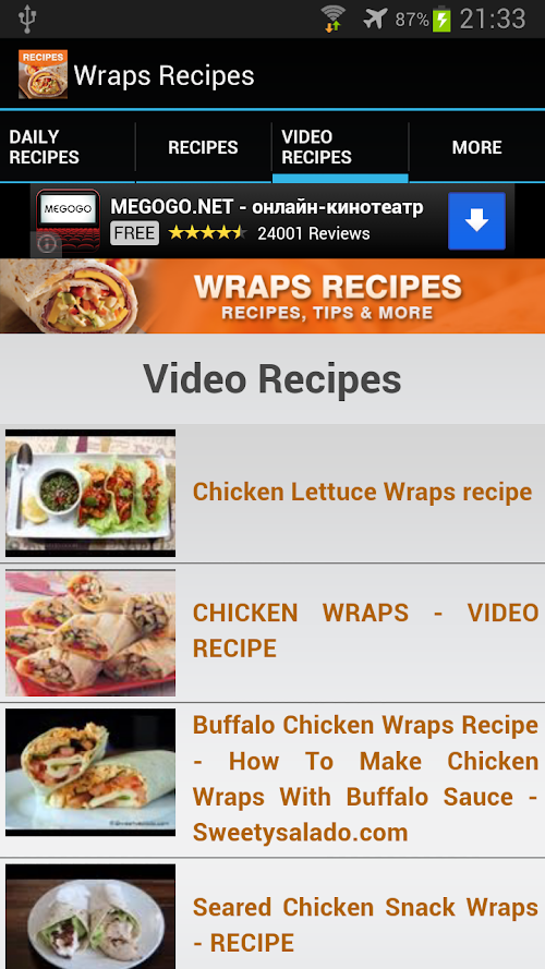Not only will you find nearly 96 delicious Wraps Recipes, but they are broken down into convenient categories according to the type of dish you want to make. Video recipes will show you exactly what to do, and Daily Recipes will give you brand new recipes EVERY DAY!