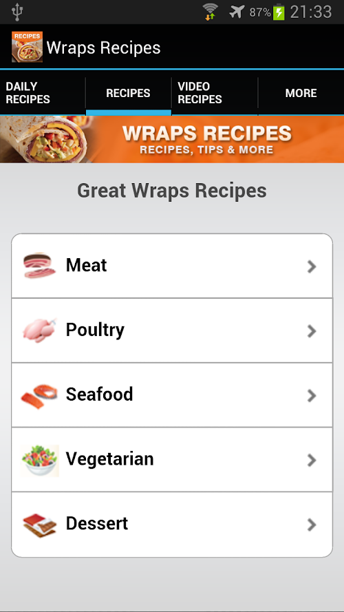 ...and lots more. Now you can save a lot of time and effort and make that special Wraps recipe you've been looking for! No more need to flip through dozens of cookbook or magazine pages. Everything you need is right here in this app. These recipes are tested and true and won't let you down. Quick and easy Wraps Recipes are just a FREE download away!